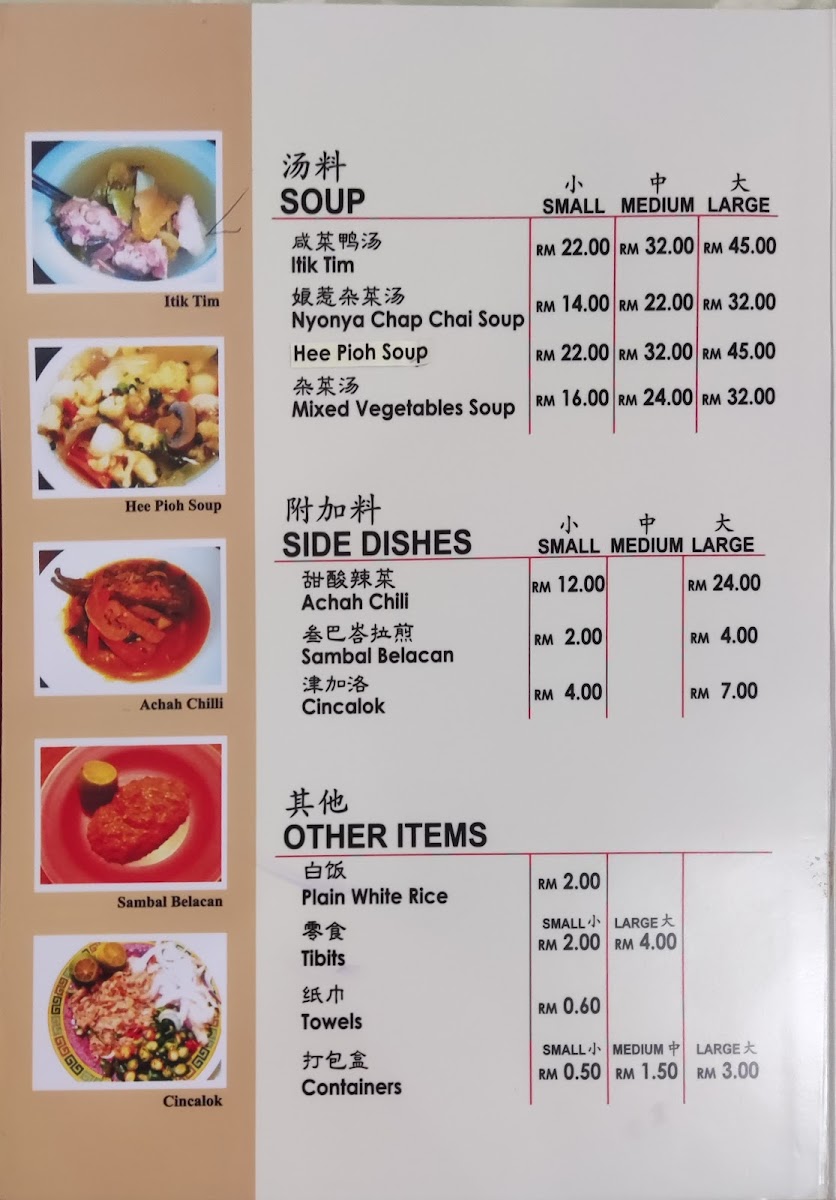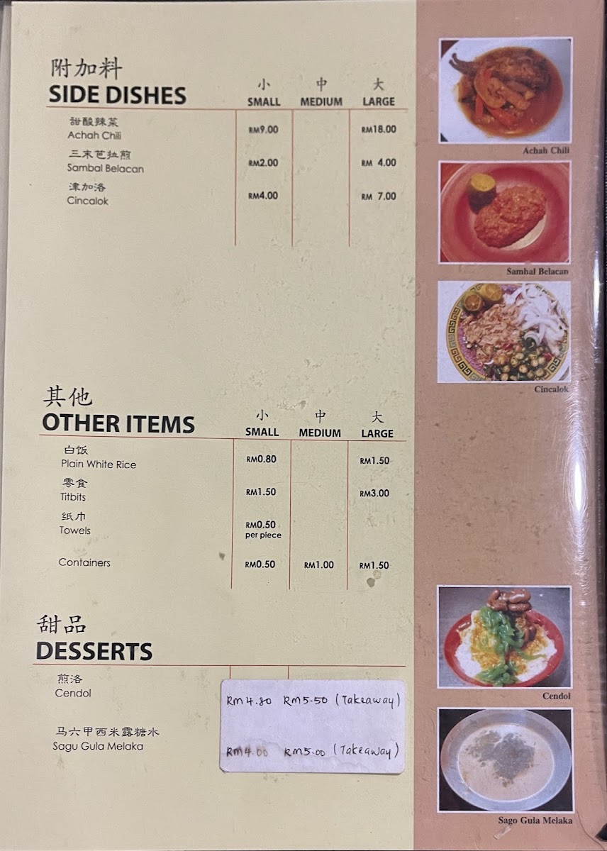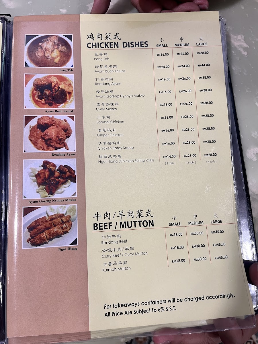 Welcome to Restoran Nyonya Makko, a hidden gem nestled in the heart of Melaka. Known for its authentic Nyonya cuisine, this restaurant invites food enthusiasts to explore a delightful menu rich in flavors and tradition. Signature dishes like Fish Asam Pedas and Beef Rendang showcase the culinary mastery of the kitchen, although the availability may vary. Diners rave about the duck soul soup and Belacan Potato Leaves, which keep customers returning for more. Set in a cozy ambiance reminiscent of a beloved grandma's home, the friendly staff deliver swift service, ensuring you feel welcomed. Whether indulging in sambal sotong petai or scrumptious desserts like cendol, every meal promises satisfaction at reasonable prices. A visit to Nyonya Makko is more than just dining—it's an experience steeped in heritage and warmth, making it a must-try for anyone in Melaka.
